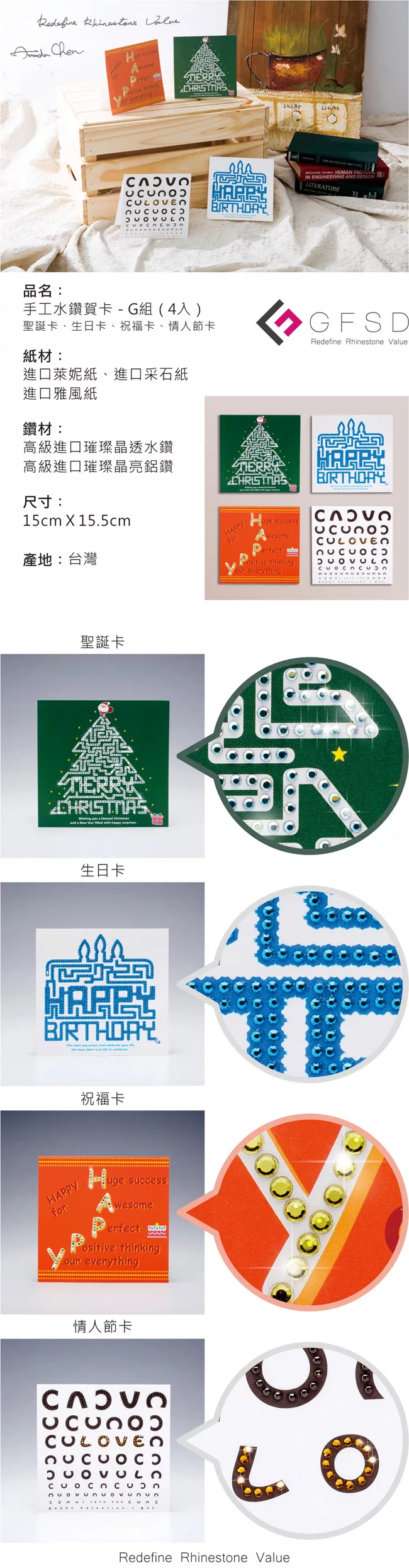 【GFSD】水鑽精品手工賀卡-G組-聖誕卡/生日卡/祝福卡/情人節卡(4入)